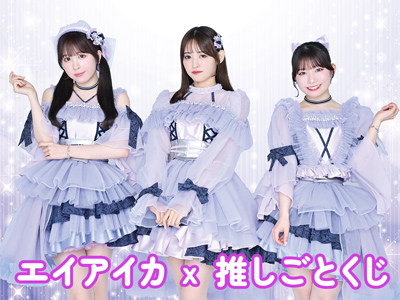 スマートフォンやPCから簡単に参加できて24時間いつでも引けるはずれのないオンラインくじサービスで、限定グッズを多数展開予定です。記念すべき第一弾にはアイドルグループの“エイアイカ”が登場。
