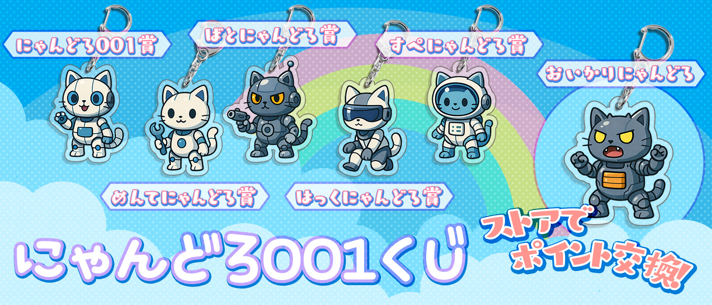 『にゃんどろ001くじ』では、癒しをテーマにした未来的なねこたちが登場します。